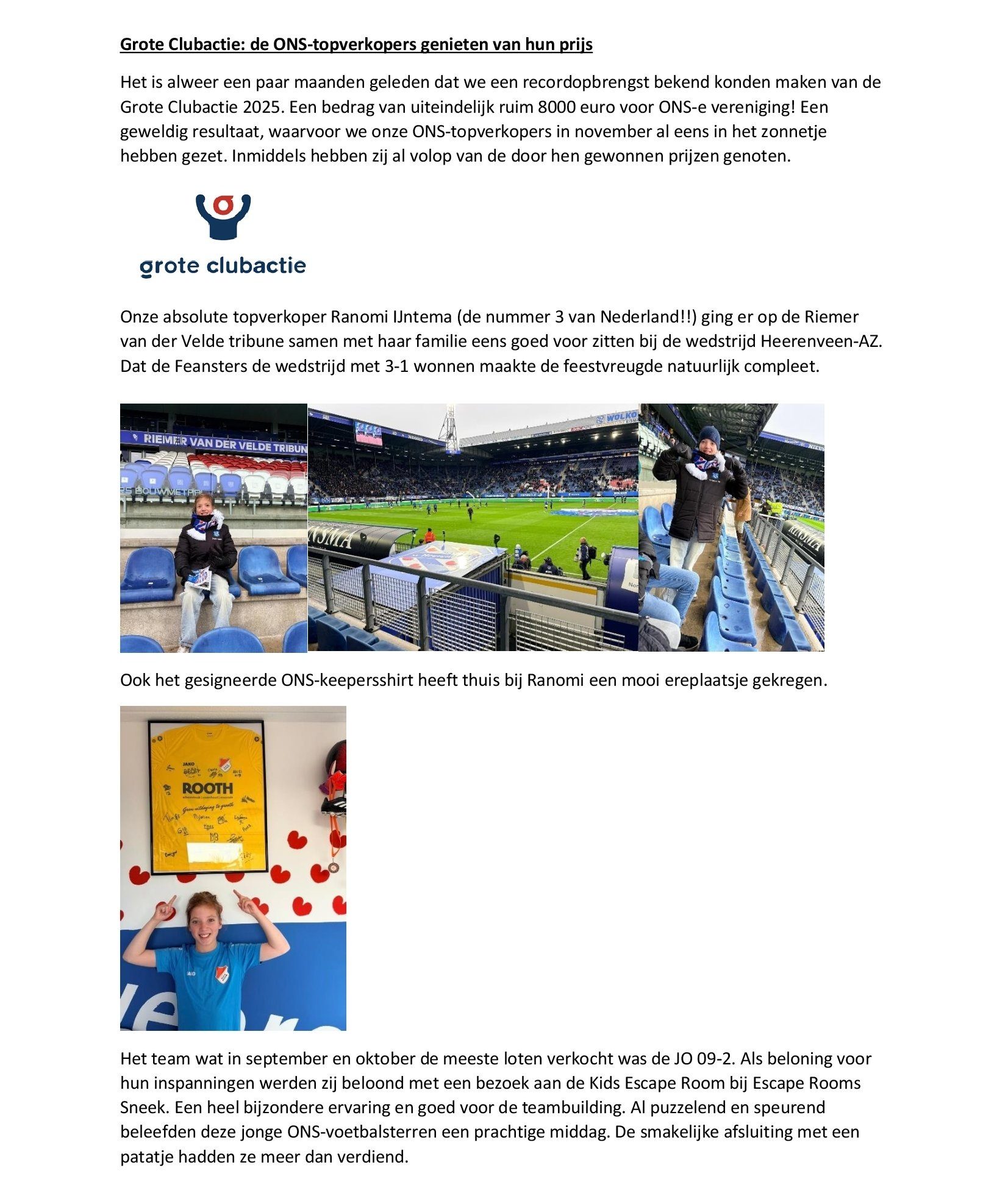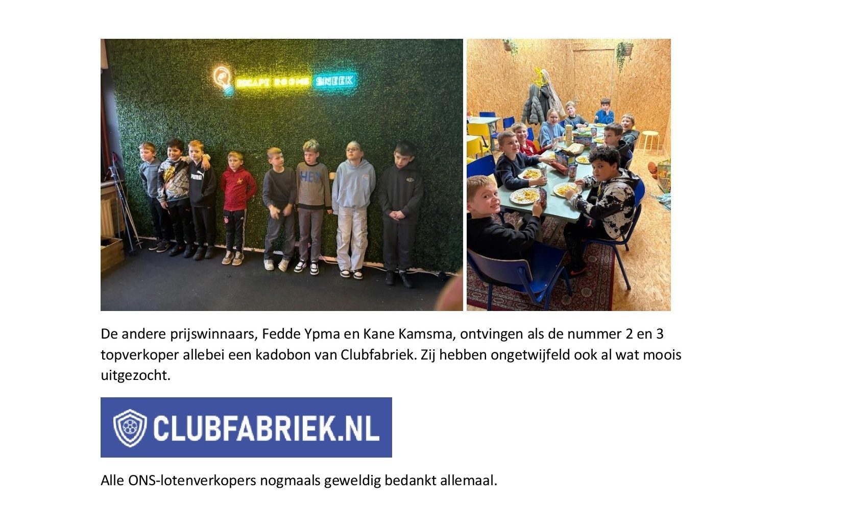 Grote Clubactie: de ONS-topverkopers genieten van hun prijs