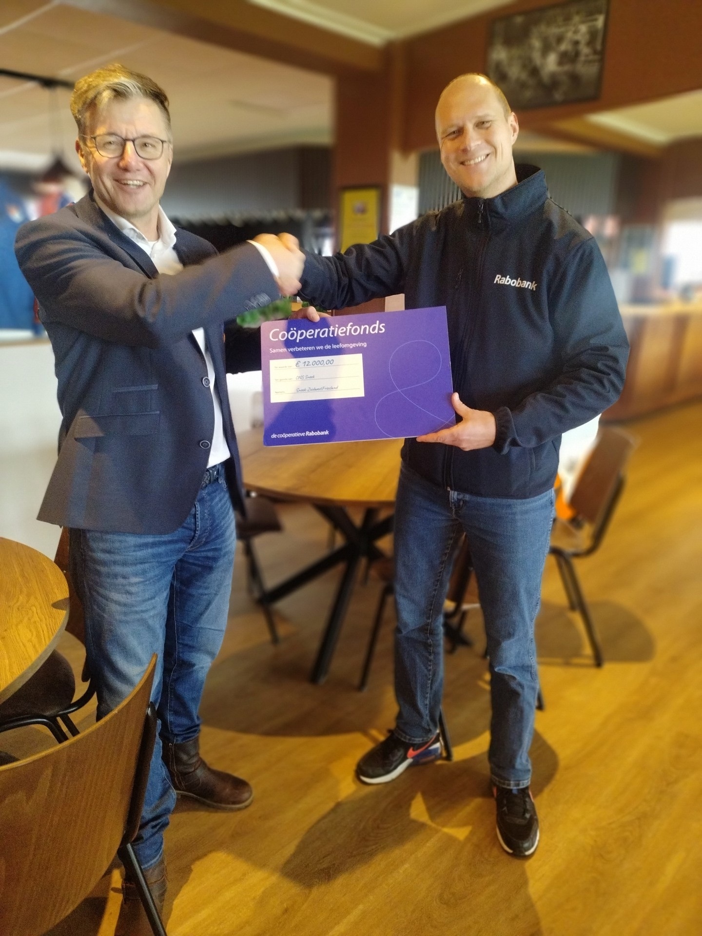 In dit kader heeft de Rabobank ons een flinke duw in de goede financiële richting gegeven door een subsidie van maar liefst 12.000 euro toe te kennen. Als club waarderen wij dit enorm. De cheque van de Rabobank werd uitgereikt aan voorzitter Rudolf Zijlstra door Rabobank financiëel adviseur Frank Stienstra.