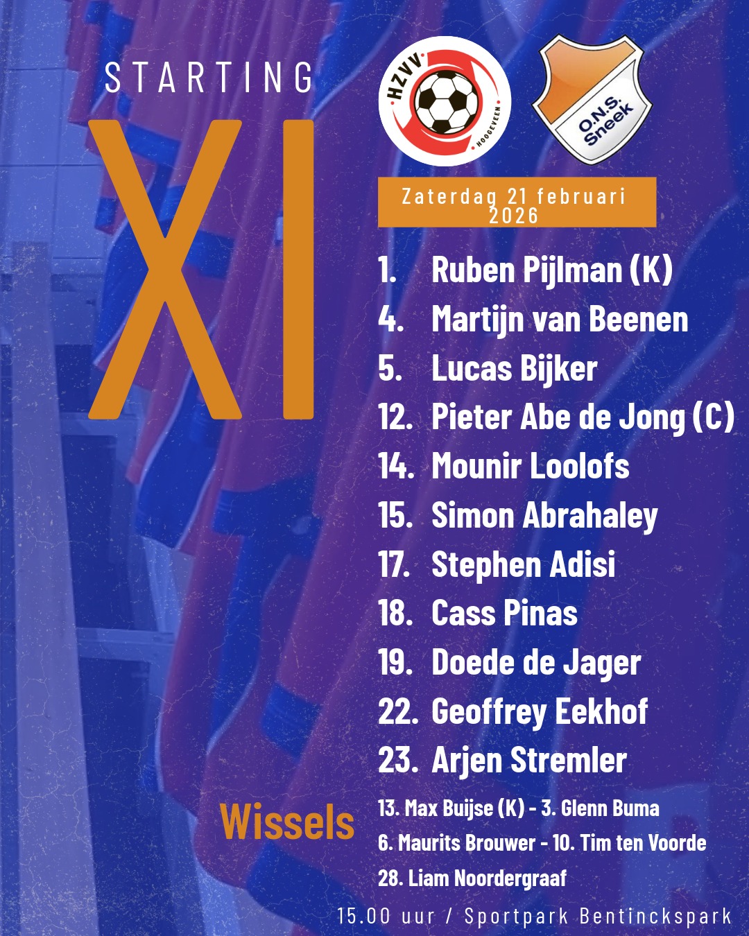 Na de rust een sterk uit de theepauze komend ONS Sneek. Waar HZVV in de eerste helft de dreigende ploeg was had nu zeker ONS Sneek een poos de druk erop staan met af en toe linke uitvallen van HZVV. Maar beide ploegen hadden de vizier niet op scherp staan. Mounir Loolofs zag een schot op de lat eindigen en Geoffrey Eekhof vond de keeper in de weg staan op zijn schot. Vlak daarvoor was HZVV onnodig door Yoran Popovic op 2 – 1 gekomen door een communicatiefout achterin bij ONS Sneek. Ondanks de druk van ONS Sneek een domper. Maar onze jongens gaven niet op. Ja, daarop kwamen er ook zeker kansen voor HZVV maar die hadden het vizier gelukkig niet op scherp staan. In de 81e minuut krijgt Doede instructies van trainer Koster: schiet eens op die goal. Doede nam dat advies gretig aan en zijn schot verdween in de 83e minuut in het net: 2 – 2. ONS kreeg nog een flinke kans. Aanvoerder Pieter Abe de Jong gaf een puike voorzet maar de jonge vol vuur spelende Liam Noordergraaf wist de bal niet goed genoeg naar beneden te koppen en zag zijn kopbal over het doel van HZVV verdwijnen.