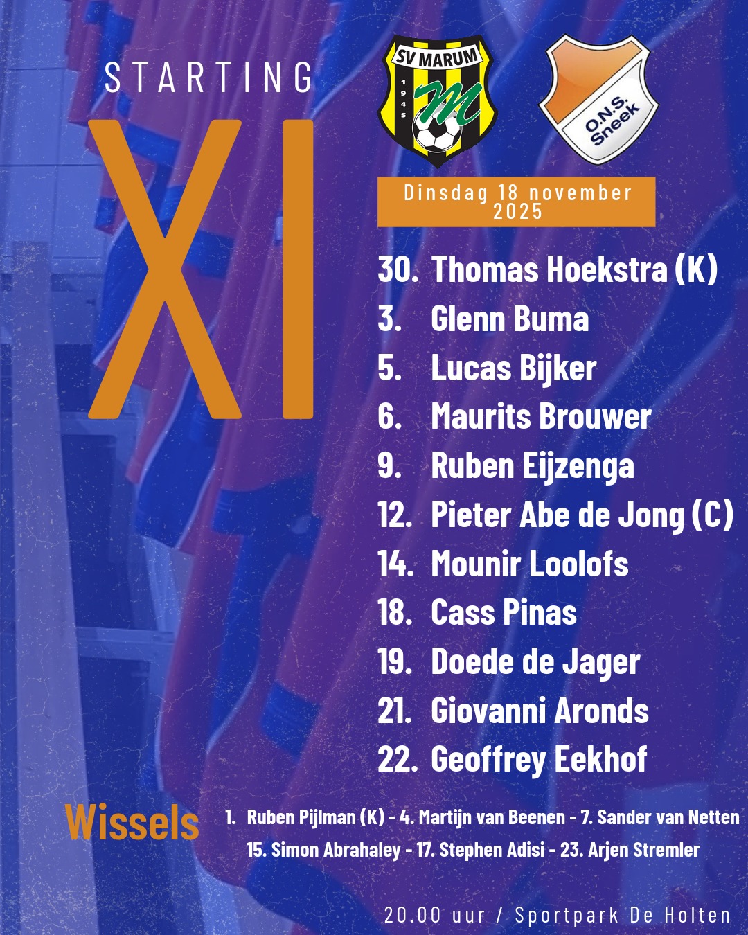 Dankzij de zege op Marum bekert ONS door en plaatst het zich voor de derde ronde. Komende zaterdag wordt er niet gespeeld in de Vierde Divisie. De ploegen genieten dan van een welverdiende vrije zaterdag. De eerstvolgende competitiewedstrijd is daarom op zaterdag 29 november thuis tegen DZC’68, met de aftrap op het gebruikelijke tijdstip van 15.00 uur. Graag tot dan!