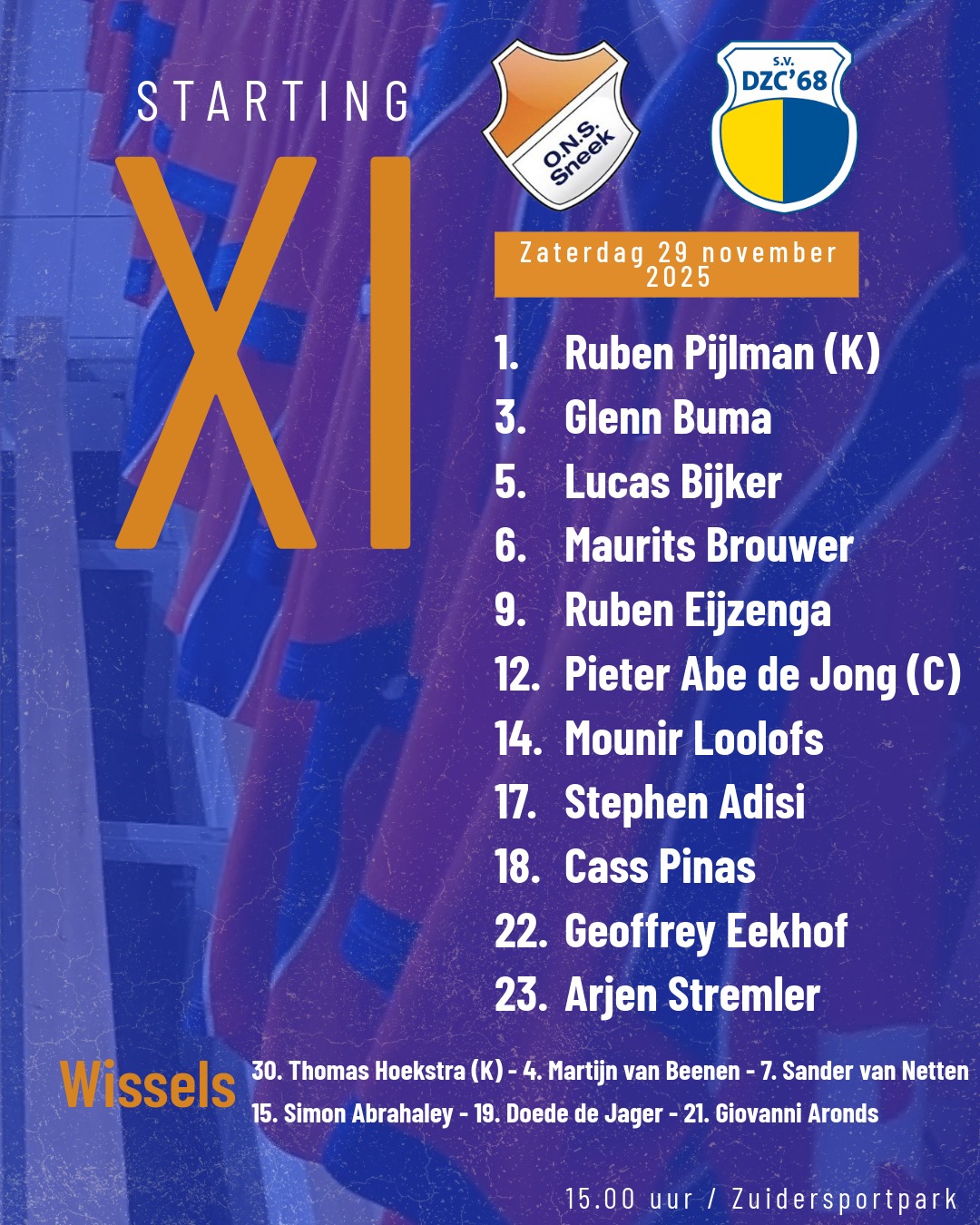 ONS en DZC schoten weinig op met het behaalde punt en zijn na het duel de nummers dertien en vijftien van de ranglijst. Hierbij moet aangetekend worden dat ONS op slechts vier punten van de zevende plaats staat. Volgende week zaterdag start de ITS-bus de motor voor een verre uitwedstrijd naar Wierden. SVZW is daar om 14.45 de opponent van de oranjehemden. Vervolgens staat op dinsdag 9 december het treffen met derdeklasser SC Berlikum op het programma, dit in het kader van de tussenronde van de Districtsbeker Noord. Graag tot bij deze wedstrijden!