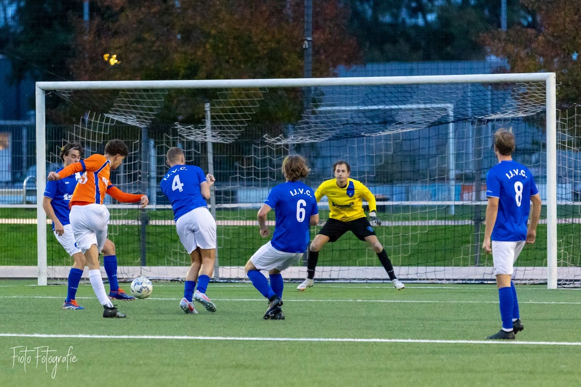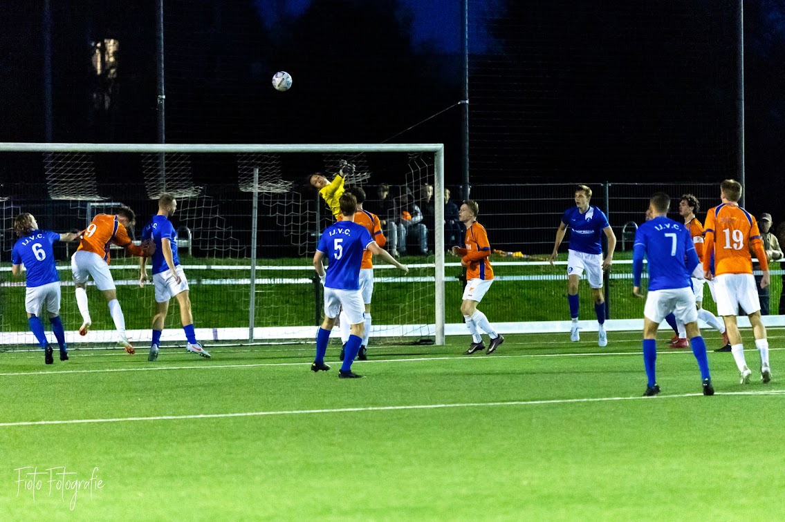 In het eerste kwartier op het sfeervolle Zuidersportpark was het de thuisploeg die de wedstrijd dicteerde en IJVC terugdrukte op de eigen helft. Arjen Stremler had na vijf minuten al kunnen scoren, maar kopte van dichtbij een metertje naast. Hij toonde zich even later van grote waarde door op de rechterkant goed door te zetten en, ondanks flinke fysieke tegenstand van de IJVC-verdediger, de bal voor te geven op Ruben Eijzenga. Het was voor onze spits een koud kunstje om de bal in de hoek te plaatsen: 1-0.