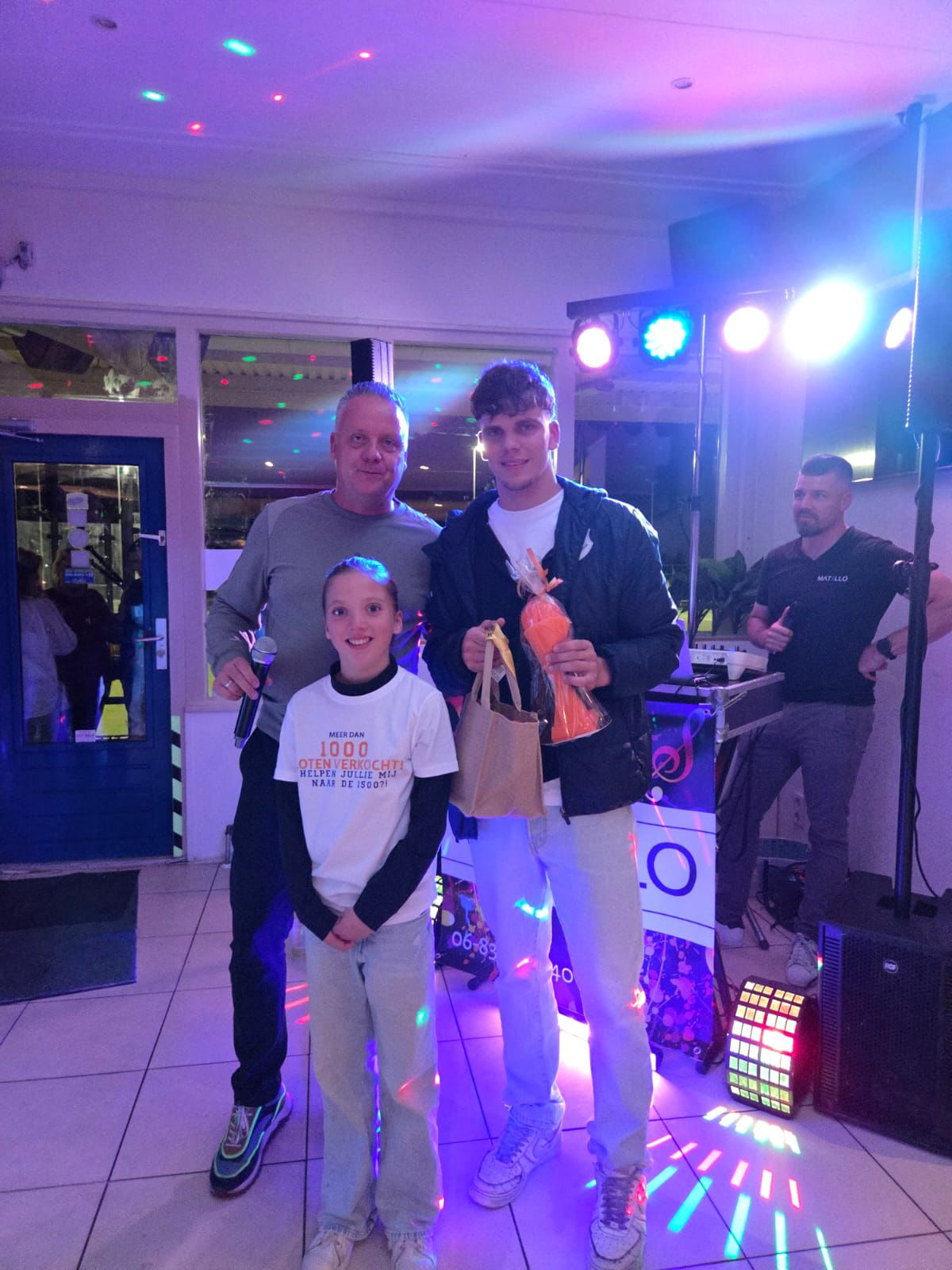 Man-of-the-match (mede mogelijk gemaakt door Stadsbrouwerij Sneek) Arjen Stremler wordt in het zonnetje gezet door BC-bestuurslid Jacob Schaper en Ranomi IJntema, onze topverkoopster van de Grote Clubactie die rondom de wedstrijd door de magische grens van 1.500 door haar verkochte loten ging!