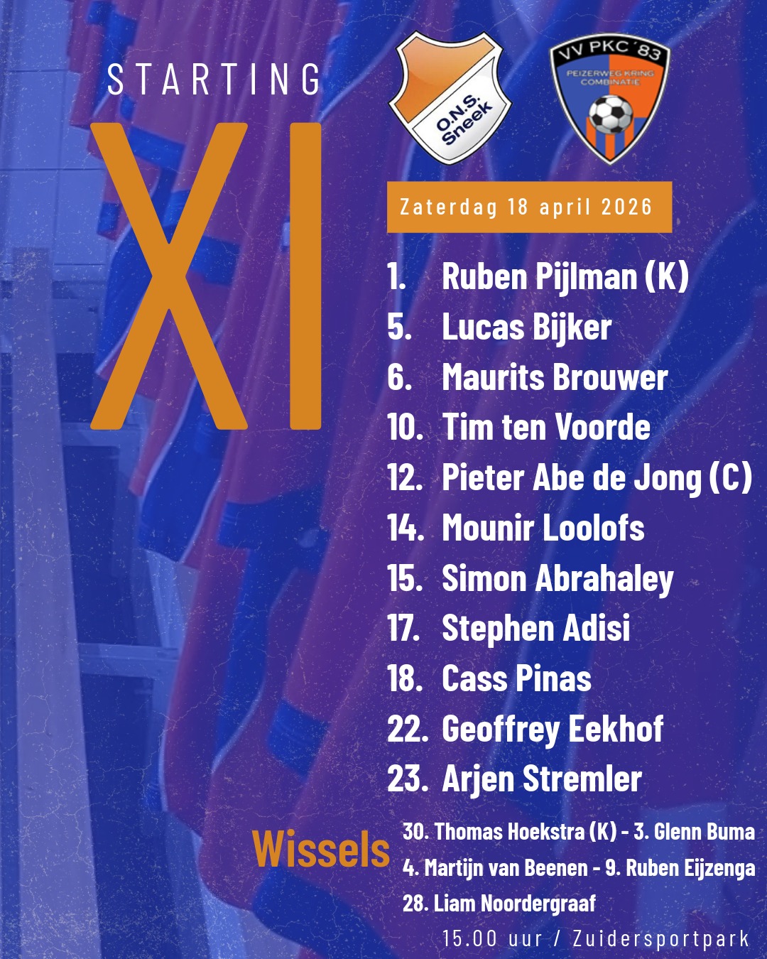 De wil is er bij onze mannen van oranje. Dat was zaterdag weer te zien in de wedstrijd tegen PKC’83. Met grote inzet en ijver probeerde men de goal te vinden. Dat lukte vrij snel in de eerste helft. Na een overtreding op Simon Abrahaley op de rechtervleugel werd de bal voorgegeven door Maurits Brouwer. Voor de goal gemist door menig speler maar bij de tweede paal werd de bal terug gegeven aan Tim ten Voorde die knap uit de draai scoorde. Een mooi begin van de wedstrijd. Alleen dan moet je het wel een vervolg geven. En ondanks de kansen slaagde de ploeg er niet in een tweede bevrijdende goal te maken. En PKC’83 met echt wel spelers van kaliber deelde regelmatig wat speldenprikken uit. Merkbaar is wel dat PKC’83 een team met individuen is en niet een team waar het geloof er nog inzit. Als kansen dan uit blijven en je regelmatig achter de feiten aan gaat lopen dan komen er ook irritaties en stevige overtredingen. Zeker als we ballen naar elkaar gaan gooien dan kan de scheidsrechter niet anders dan twee keer geel geven aan een speler van ONS en PKC’83.