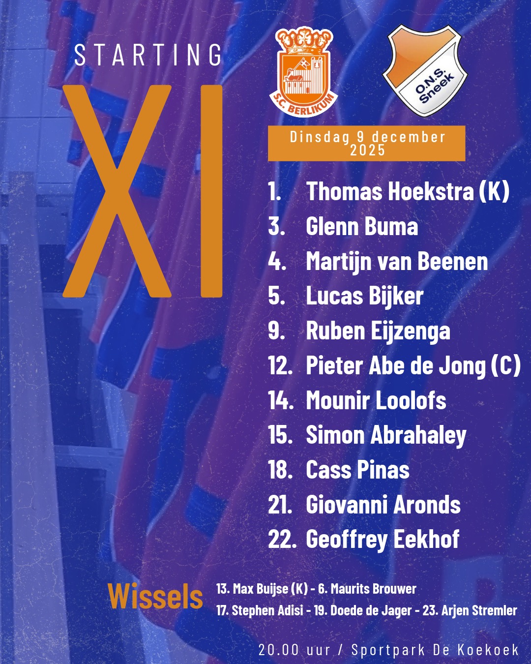 Na de overwinningen in de eerste (IJVC: 3-1) en tweede (Marum: 1-6) ronde van het noordelijk bekertoernooi wachtte in de derde ronde derdeklasser SC Berlikum. De veelbesproken loting, waarbij er opnieuw geloot moest worden vanwege het ontbreken van het balletje met Buitenpost in de eerste poging, kende voor spits Ruben Eijzenga de gedroomde uitkomst. Hij mocht het gaan opnemen tegen zijn dorps- en oud-teamgenoten. De familie Eijzenga pakte voor deze gelegenheid uit door de ONS-selectie voorafgaand aan de wedstrijd een uitstekend pastabuffet aan te bieden, waarvoor dank! Doordat ook Berlikum haar thuisduels in het oranje afwerkt, trad ONS Sneek aan in het donkerblauwe uittenue.